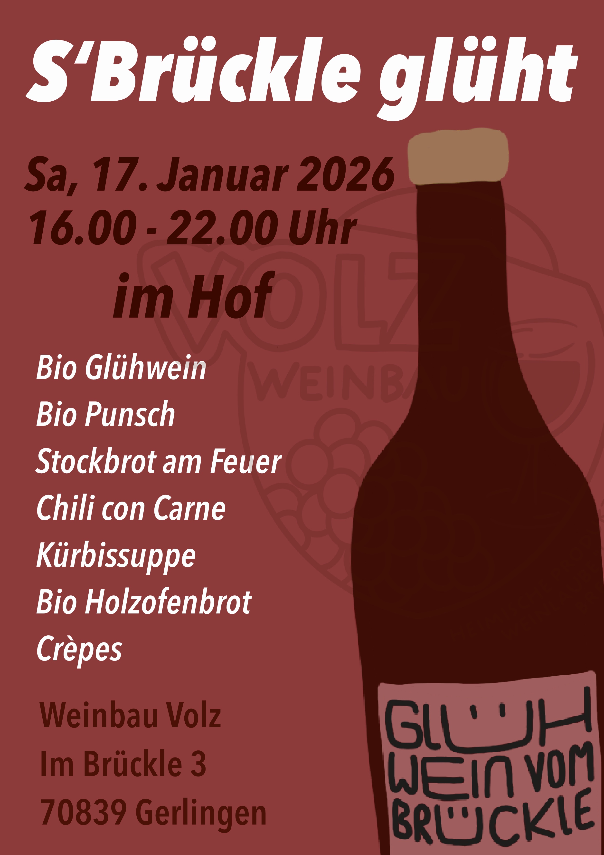 Herzlich Willkommen im Brückle! Wir betreiben Weinbau bereits in der dritten Generation und sind das erste Bio-Weingut in Gerlingen: Im Jahr 2011 haben wir den Betrieb umgestellt und ernten seit Herbst 2014 Bio-Wein an unseren Hängen. In unserer Weinlaube können Sie deshalb Weine, Traubensaft und Sekt in Bio-Qualität genießen. Auch unsere Obstanlagen sind auf Bio-Landbau umgestellt. In unserer hauseigenen Brennerei machen wir daraus Obstbrände, die wir ebenfalls in der Weinlaube ausschenken. Alle unsere Produkte sind handgemacht – mit Liebe und Sachverstand.